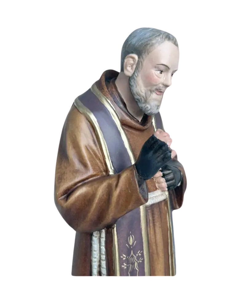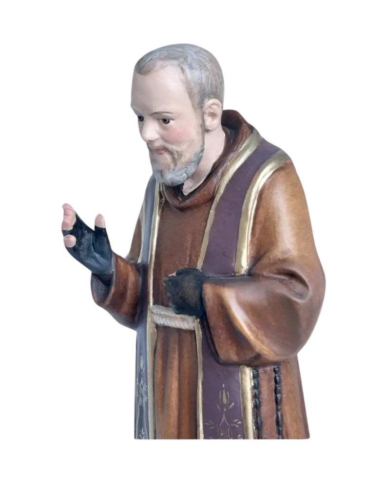 Crafted from hand-carved maple wood , this statue captures with extraordinary precision the intensity of his serene and compassionate gaze, his stigmata-marked hands , and the simplicity of his Franciscan habit.